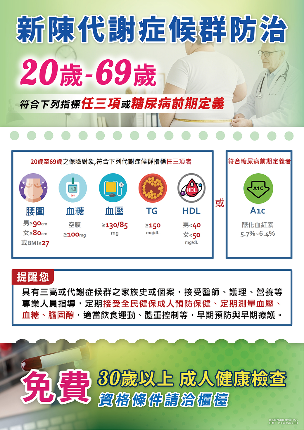 20歲~69歲的朋友注意囉 — 新陳代謝症候群防治,現在開始!